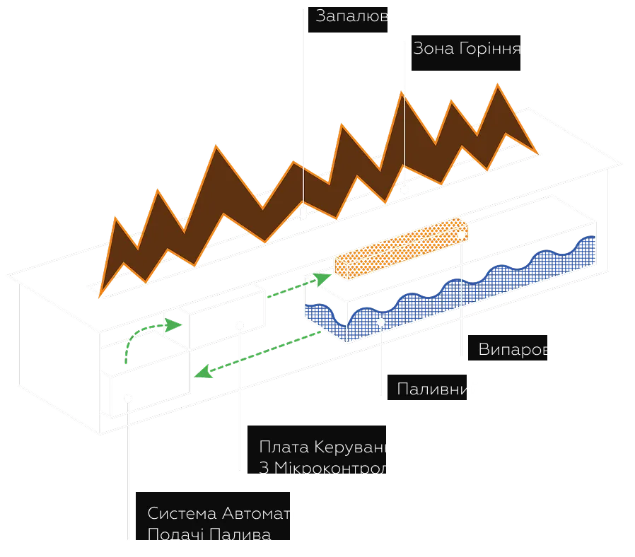 Підключення до газу не потрібне. Система працює автономно, без ризиків, складних підключень та додаткових витрат на інженерію.